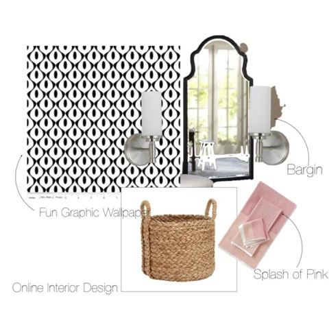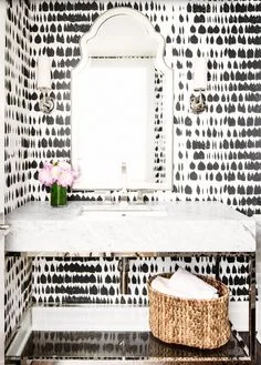 Get The Look :: Black And White Bathroom Sep 23 Written By Melissa Grieve Wallpaper/Mirror/Lights/Basket/Towels Melissa Grieve