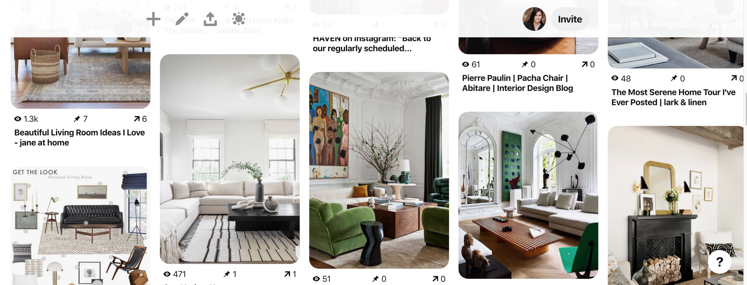 I love Pinterest! It is my go-to for inspiration and when working with clients. I start almost all projects with a secret board where we can both add items and I can get an overall sense of what they are drawn to. Once you have gathered a good amount of inspiration photos look at them as a whole. Are they light and bright or dark and moody? Do they have pops of colour or soft and serene neutrals? This will give you a design direction.