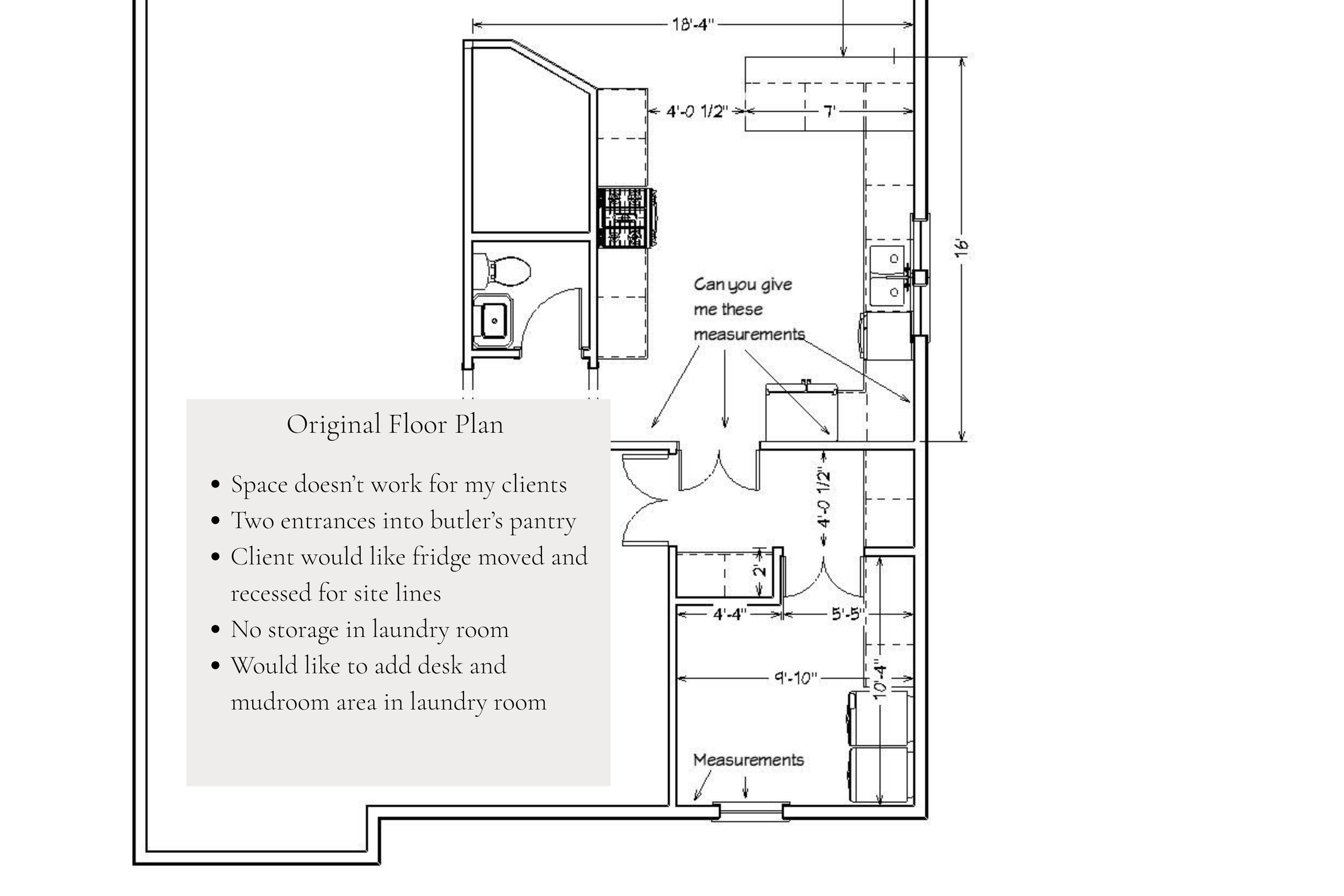 My client wanted to elevate her butler’s pantry into a space that felt more intentional and beautifully finished. Since this is a transitional area between the kitchen and the rest of the home, it needed to be both practical and visually cohesive. The laundry room had tons of wasted space, and with a large family and a pool, we needed to make the most of it. After a few options, here are the final plans.